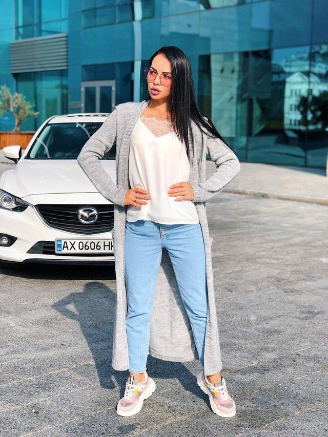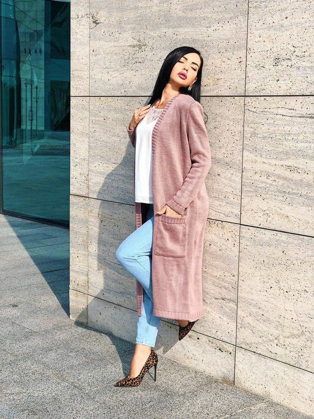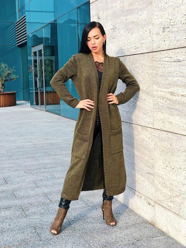 Довгий кардиган Viola гладкого в'язання з об'ємними накладними кишенями Pof216