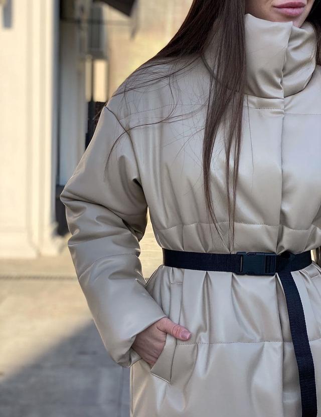 Найтрендовіший подовжений пуховик з екошкіри в розмірі oversize. Одна з головних переваг цього пуховика — тканина, яка не вбирає вологу, не пропускає вітер, Вам не страшний не дощ, не сніг. Пояс йде в комплекті.