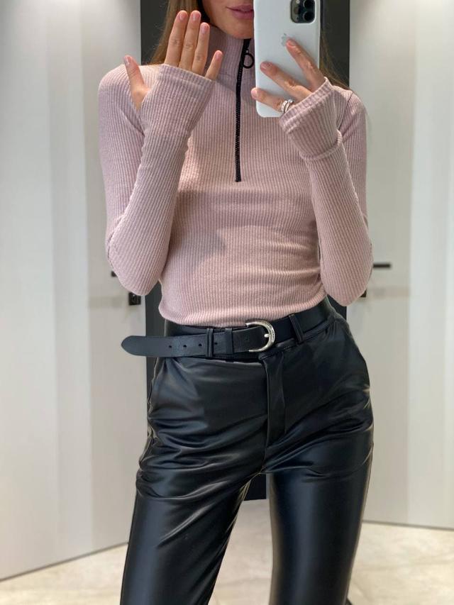 Гольф жіночий базовий із трикотажу гумки з ангоровою ниткою на блискавці з рукавами-мітенками Ssld676