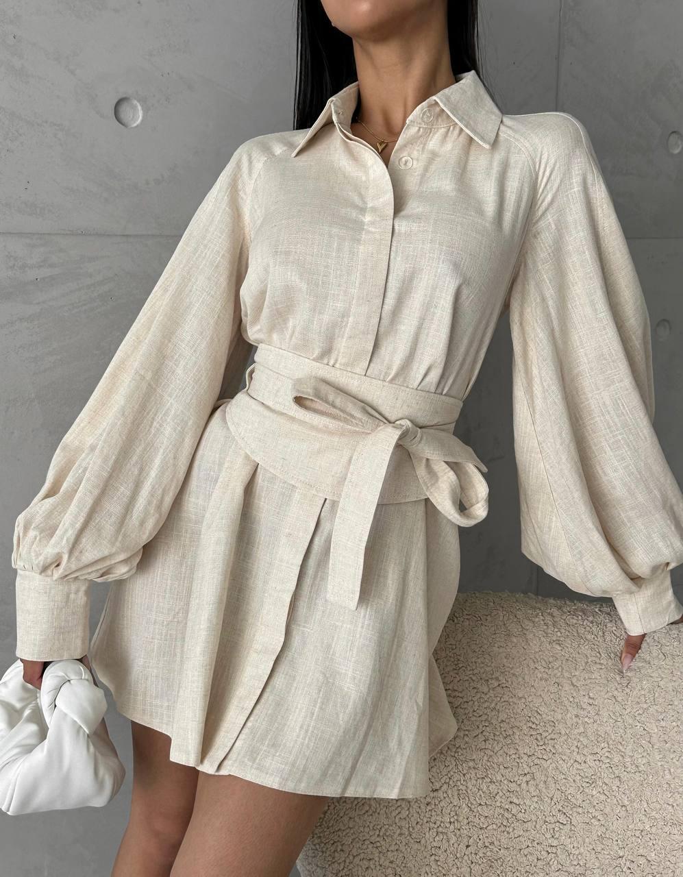 Сукня-сорочка на будь-який випадок життя. Сукня сорочка міні жіноча стильна з льону з об'ємними рукавами та поясом. Льон - це завжди легкість у кожному русі і повне відчуття комфорту.