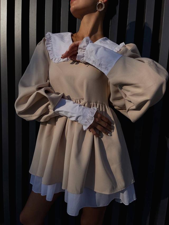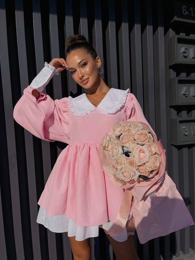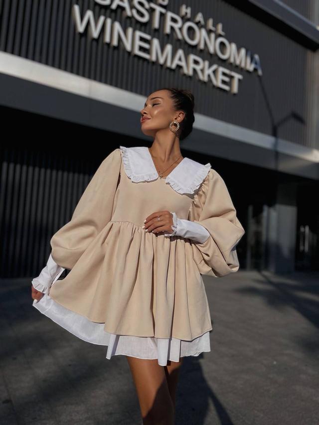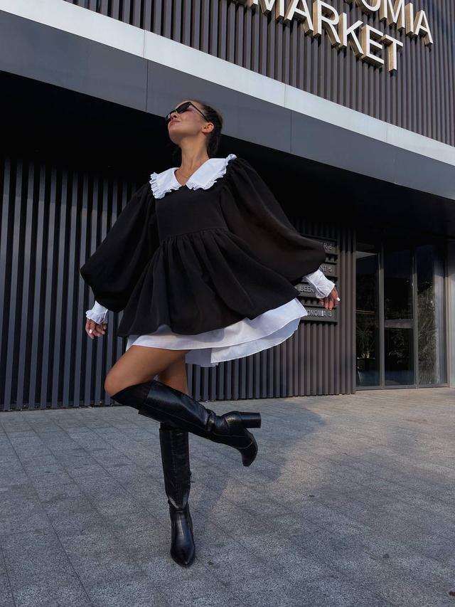 Сукня міні жіноча з білим коміром, об'ємними рукавами і з підспідничником Smsa6447