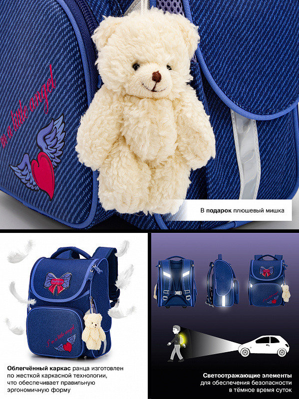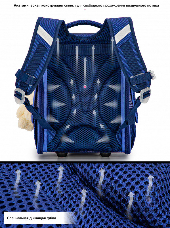 Світловідбивні елементи розташовані на передній, задній і бічній частинах ранця для гарантування безпеки темної пори.