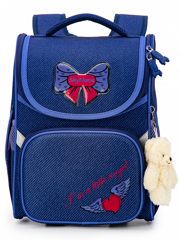 Ортопедичний шкільний каркасний рюкзак до школи для 1-4 класу для дівчаток синій Winner One Skyname 2080 з об'ємним 3D малюнком Бантик.