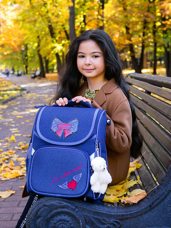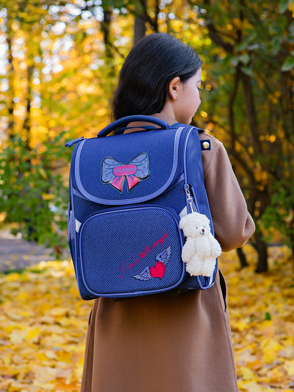 Рюкзак-ранець шкільний ортопедичний для дівчинки в 1-4 клас синій з бантиком Winner One SkyName 2080