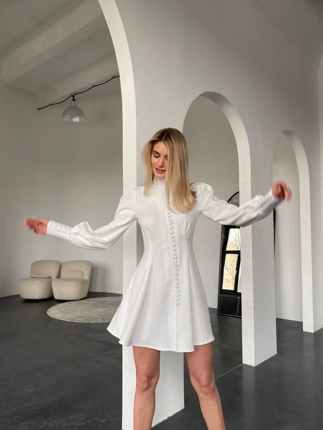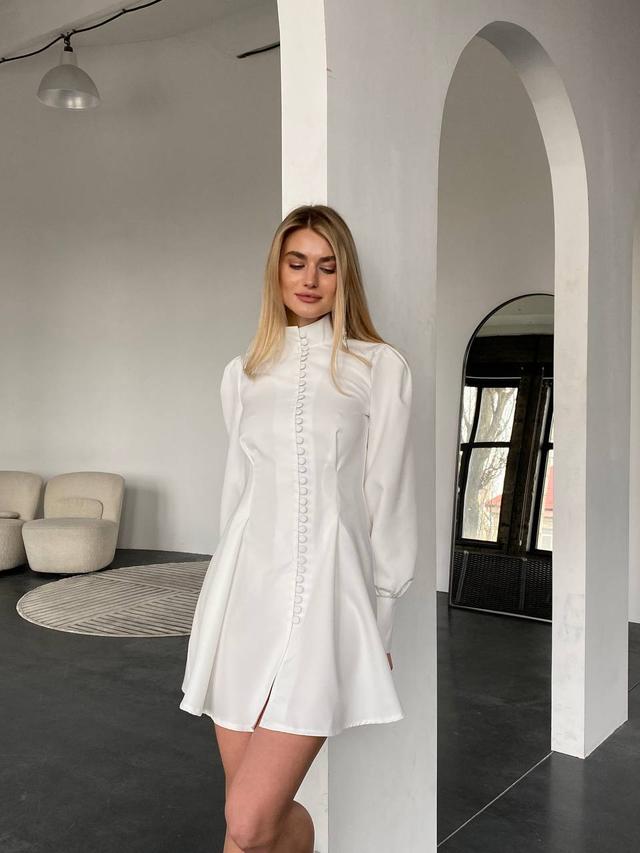Гарна і стильна сукня Міні Августина на гудзиках з об’ємними рукавами та коміром стійка.