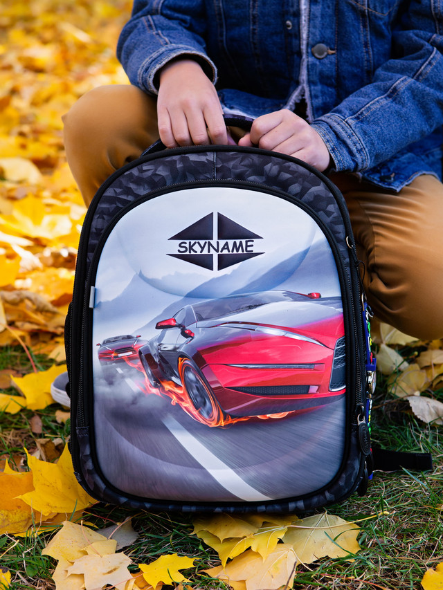 Стильний каркасний рюкзак-ранець ортопедичний шкільний для 1-4 класів сірий хлопчику з 3D-малюнком Червона Машина Winner One Skyname R4-417