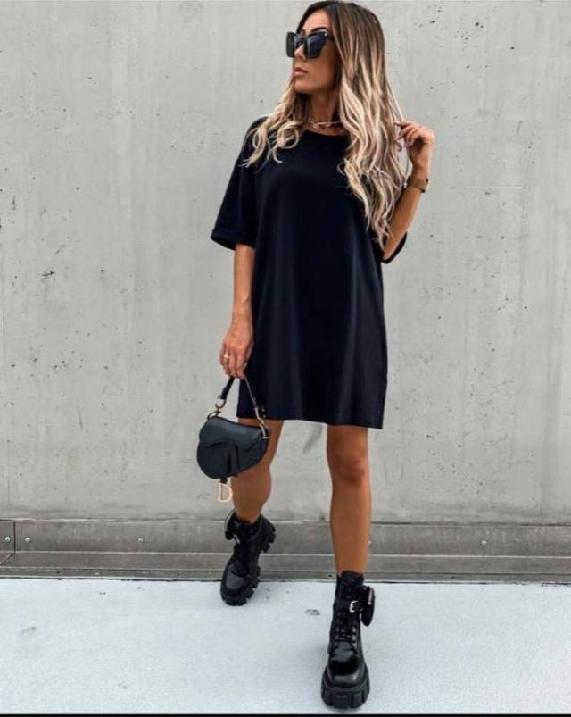 Класична однотонна сукня - футболка з літньої бавовняної тканини. Вільна, літня, приємна до тіла. Повномірна, вільного крою.
