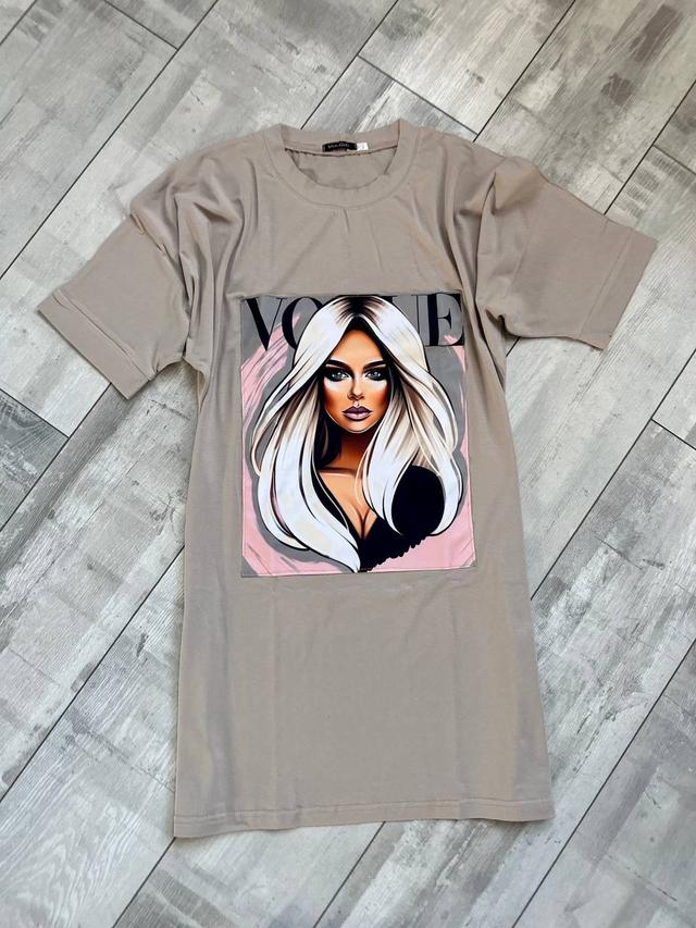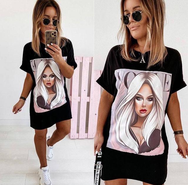 Стильна сукня-футболка міні жіноча оверсайз з принтом Sma7468