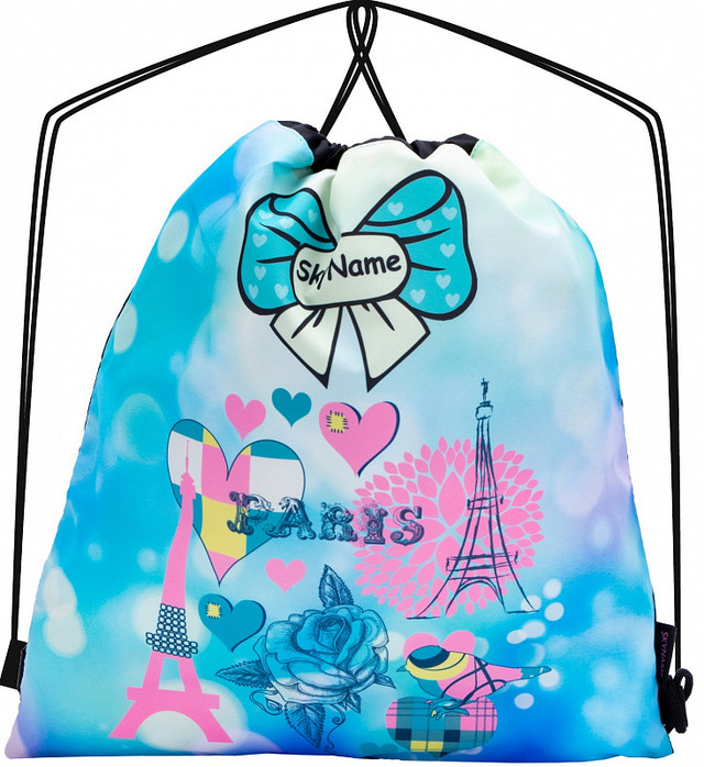 Рюкзак сумка-мішок для взуття на шнурках Париж бірюзовий шкільний для дівчинки Winner One SkyName M-140