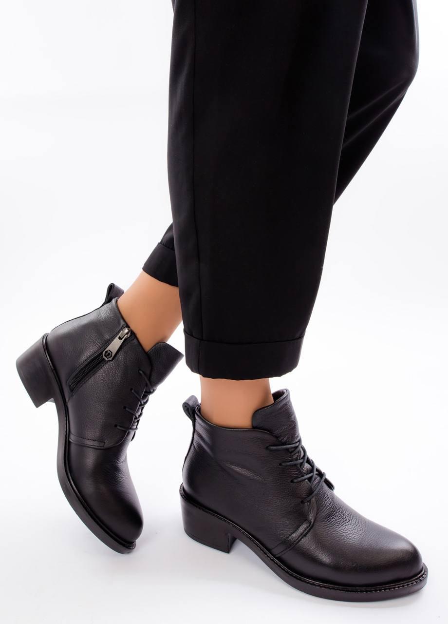 Модні жіночі черевики натуральна шкіра із шнурівкою та зручними підборами D20KB