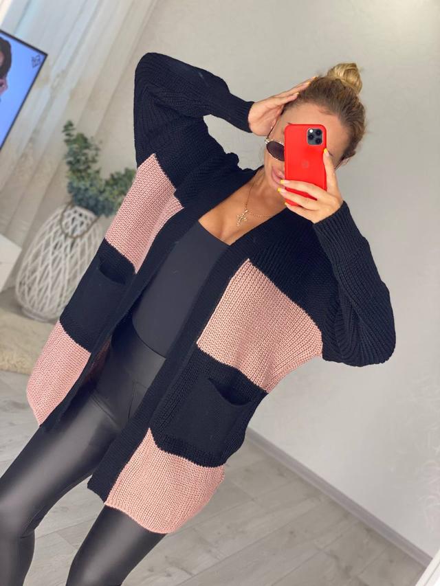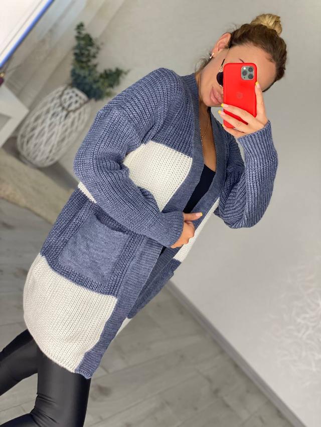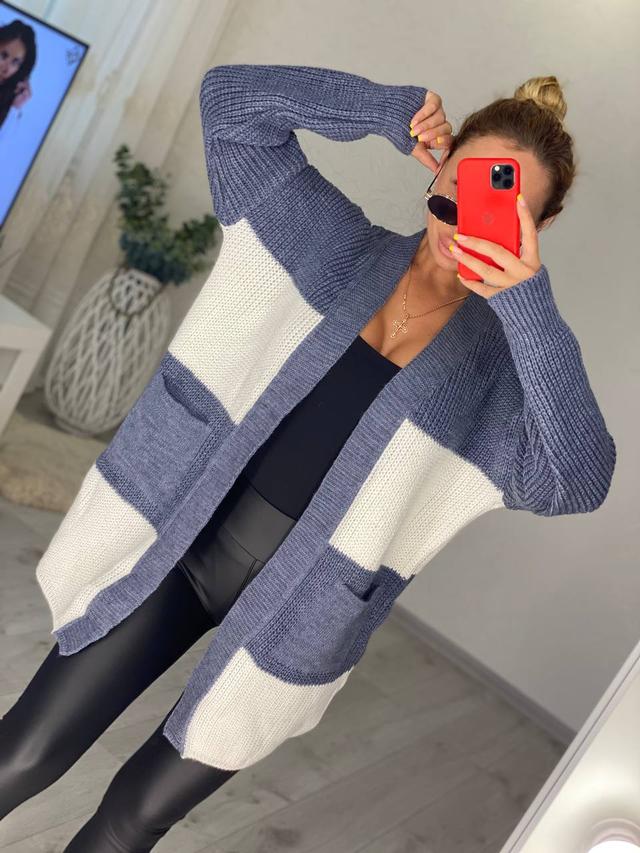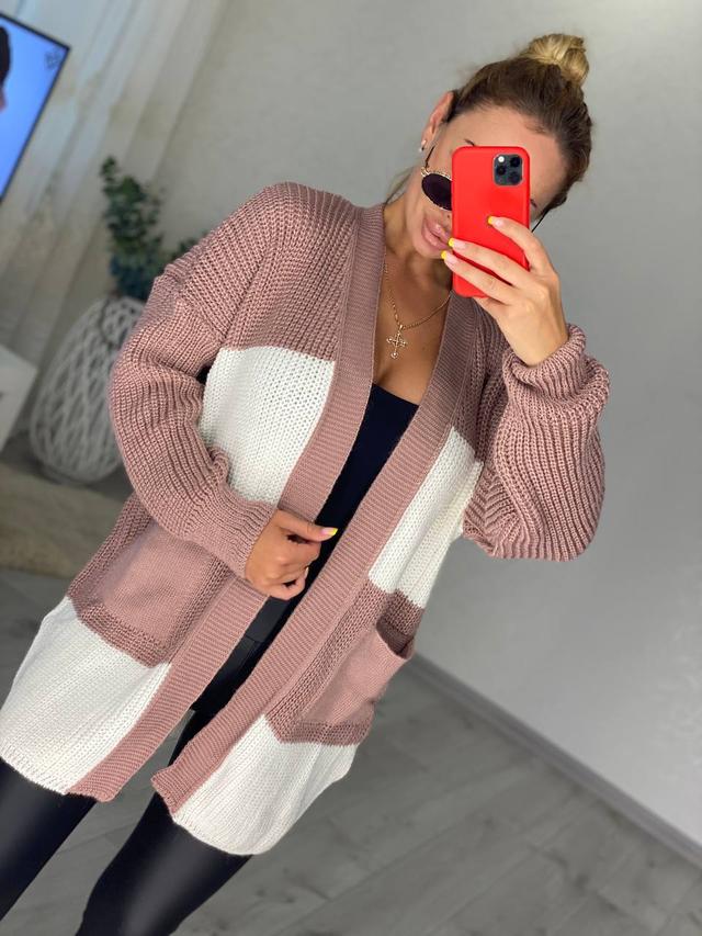 Модний жіночий кардиган у широку смужку теплий в'язаний Pmod389