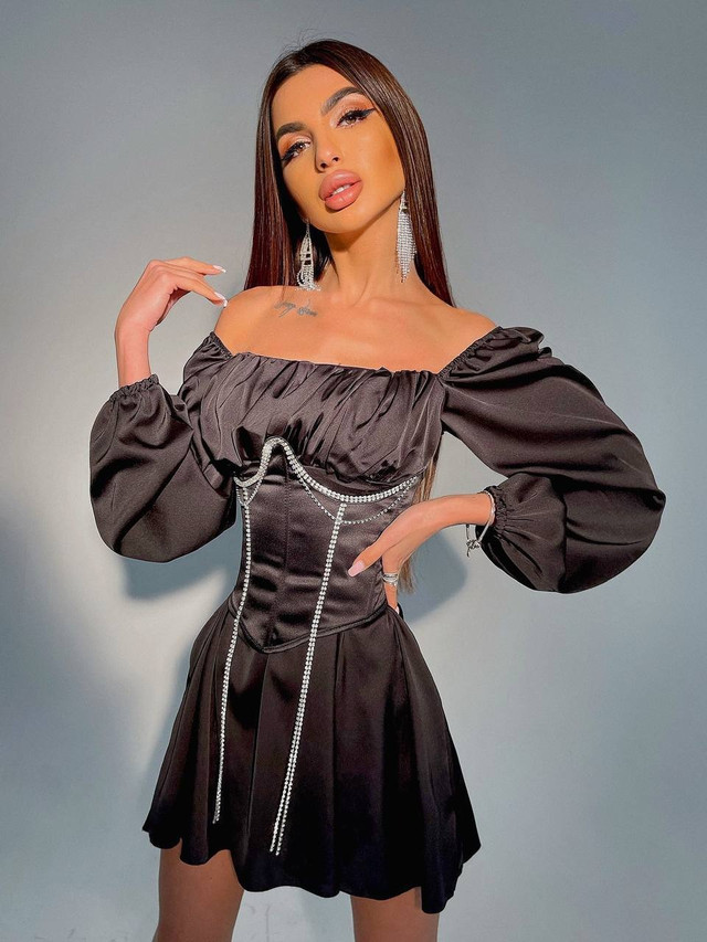Красивий жіночий корсет декорований стразами ручної роботи.