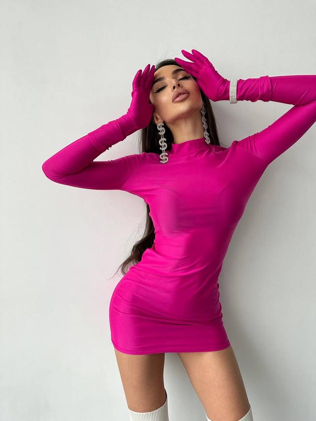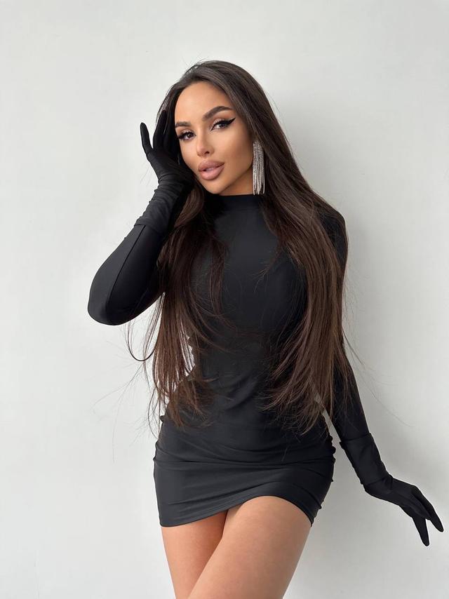 Шикарна міні сукня по фігурі з рукавами рукавичками біфлекс яскраві кольори Sms7964