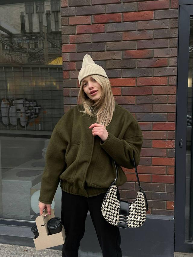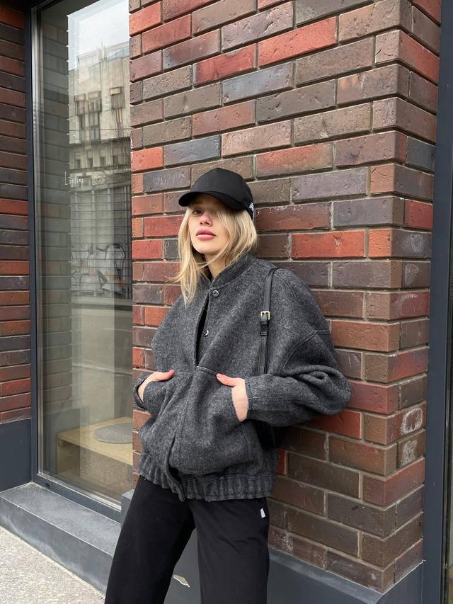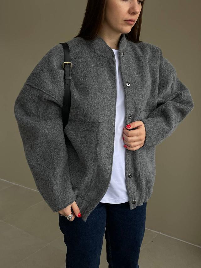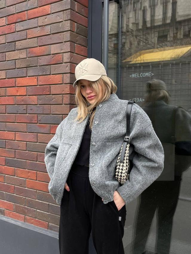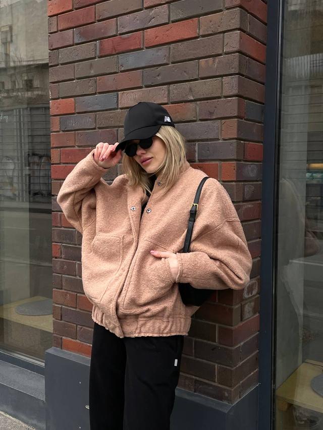 Стильний весняний жіночий вовняний бомбер на блискавці з кишенями Gwm2409