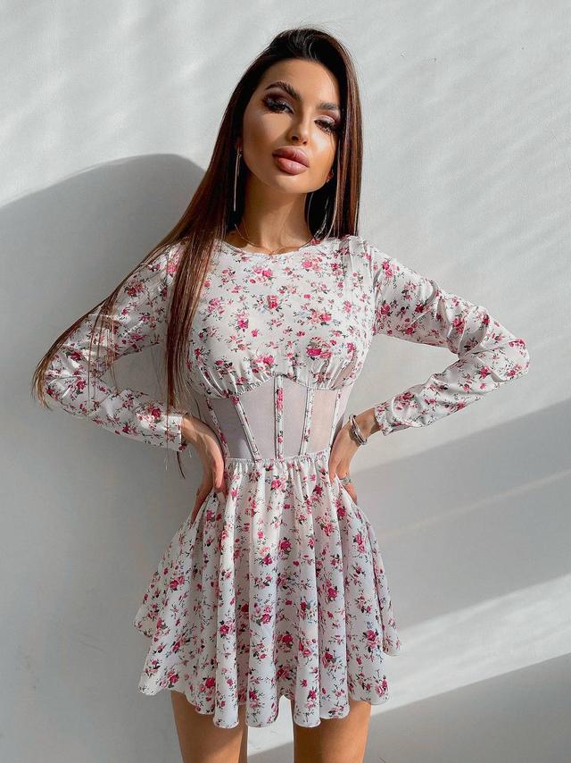 Квіткова жіноча сукня з корсетною вставкою та спідницею-сонцем Smb8056
