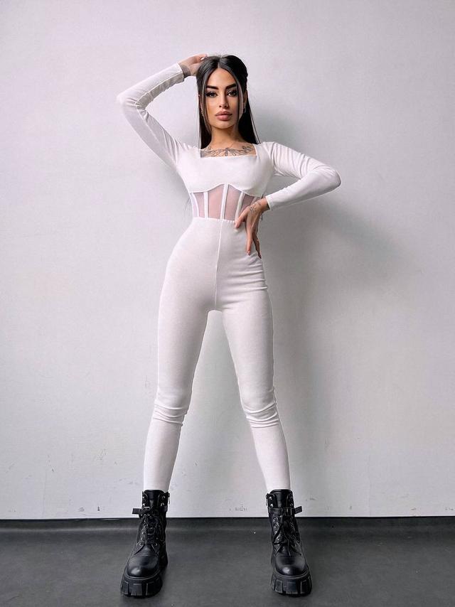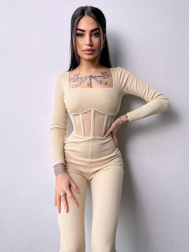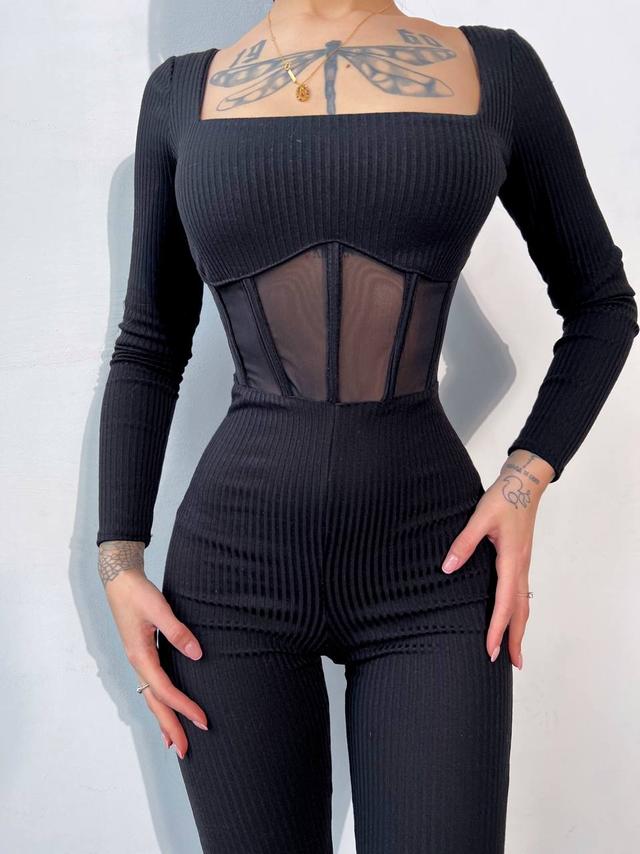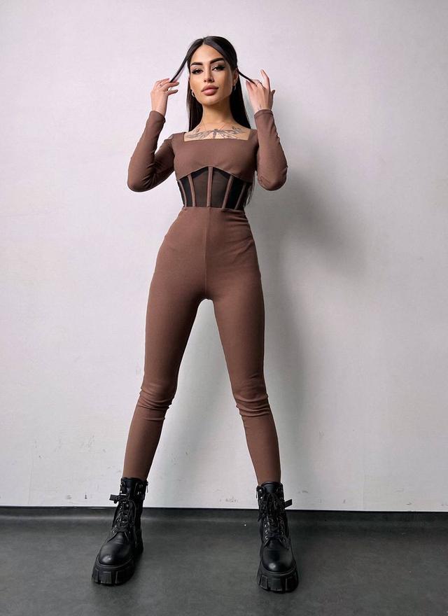 Облягаючий трикотажний жіночий комбінезон з елементами корсету Db5375