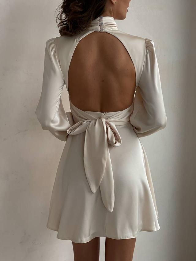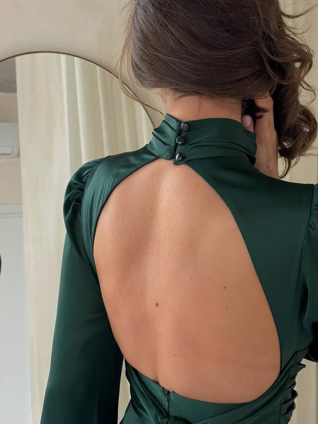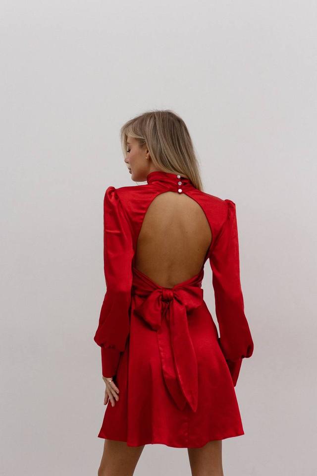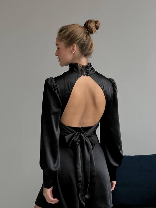 Елегантна жіноча сукня Mirage із шовку з відкритою спиною та довгим рукавом Smdi8072