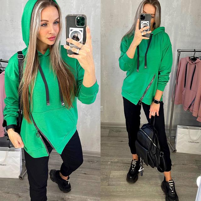 Зручний трикотажний жіночий костюм кофта з капюшоном і штани Da5400