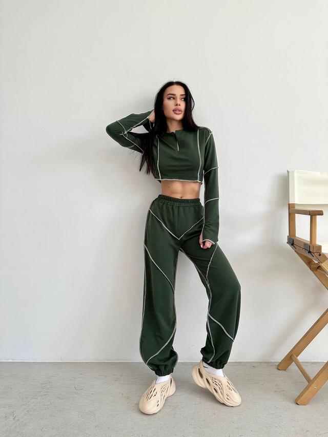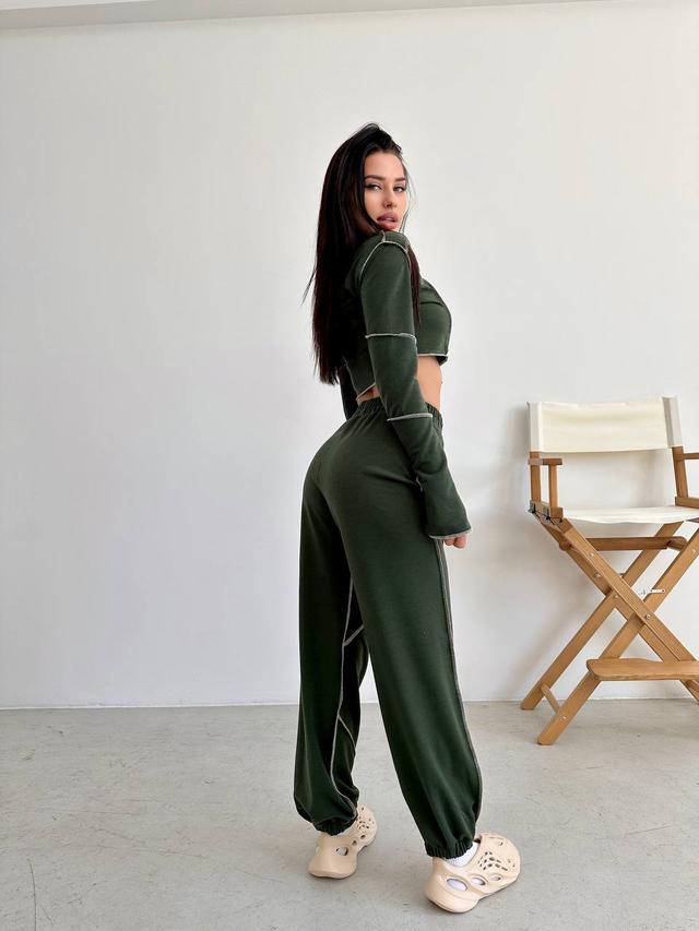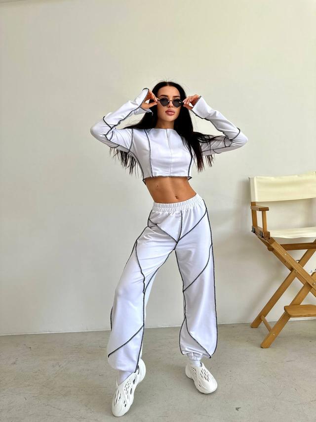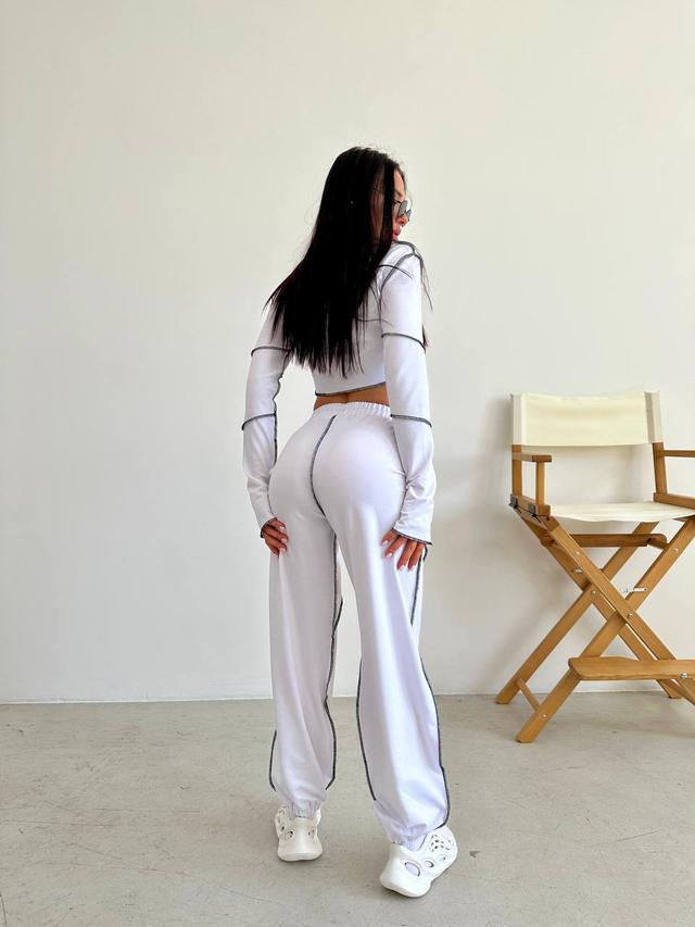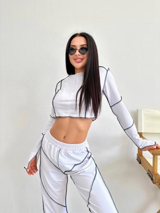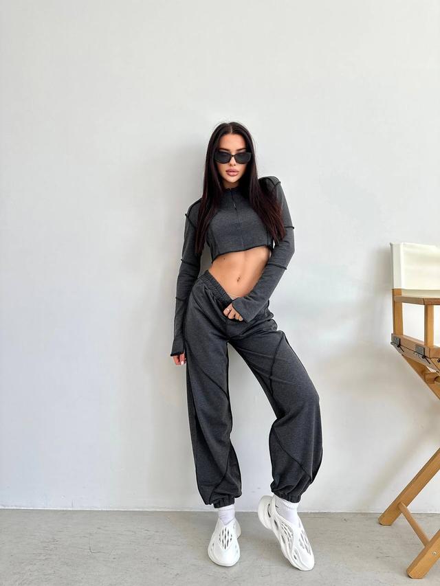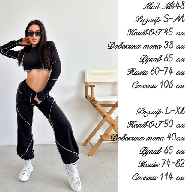 Трендовий жіночий костюм шви навиворіт укорочена кофта та штани на резинці Dv5427