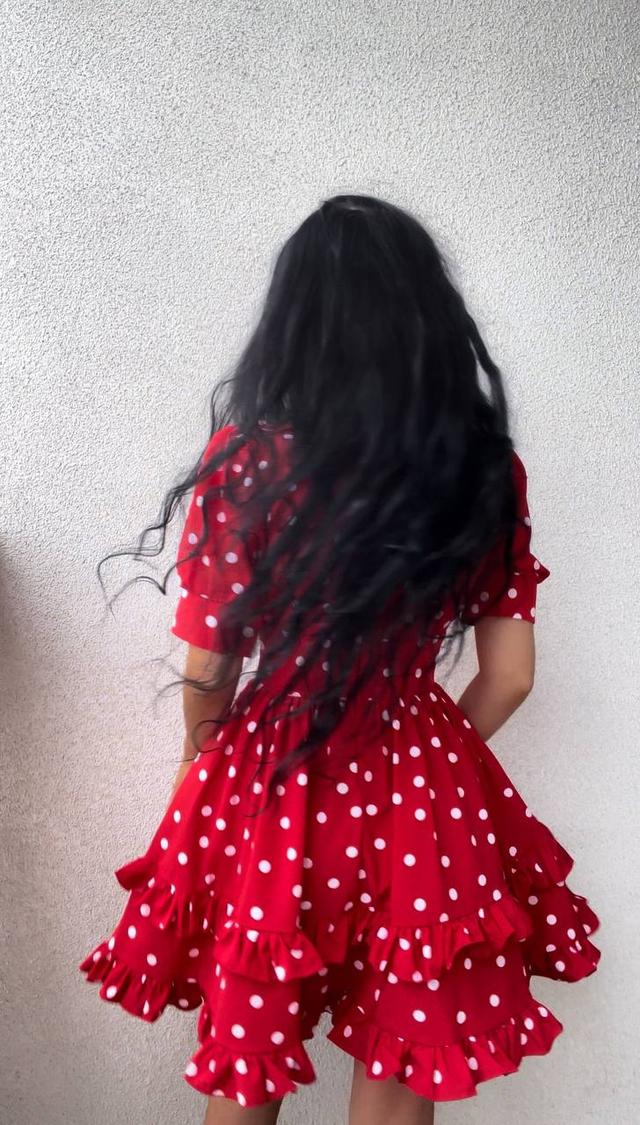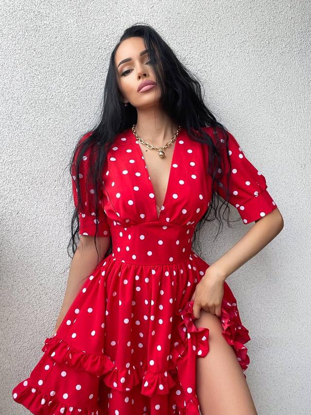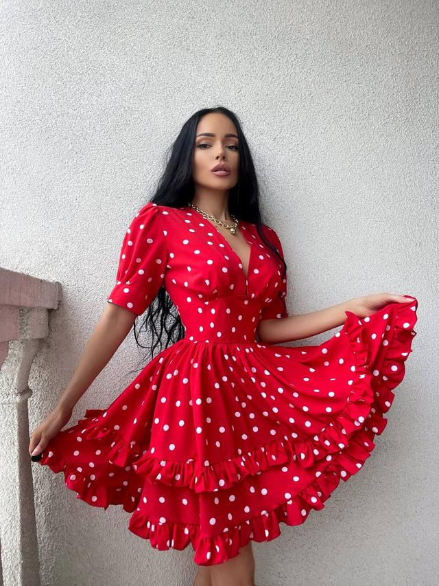 Яскрава жіноча сукня в горошок рукав ліхтарик і пишна спідниця Sms8235
