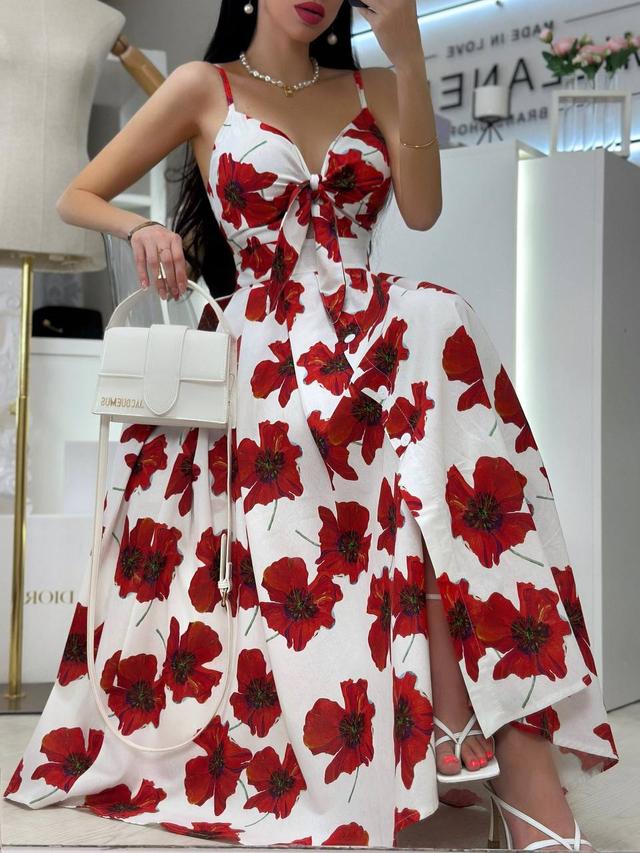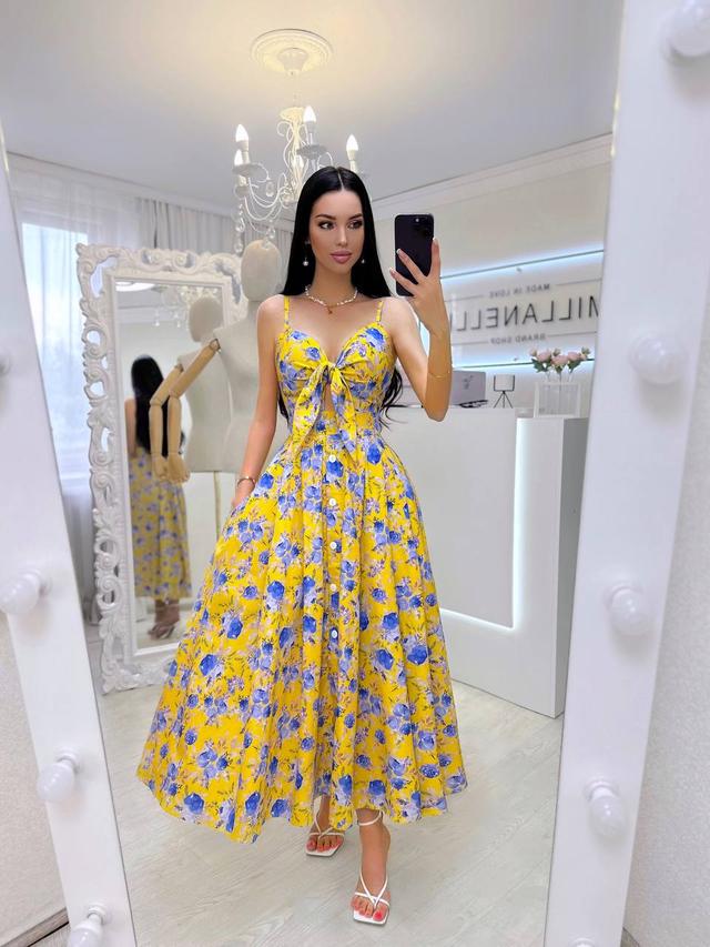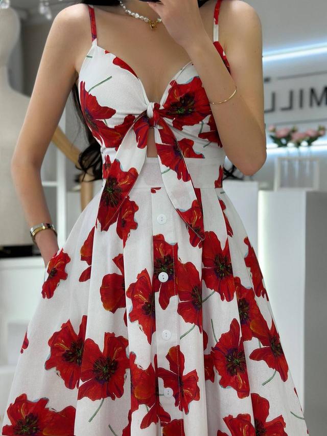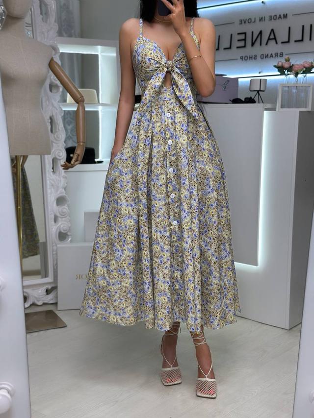 Жіноча квіткова сукня міді Монте-Карло із зав'язкою на грудях та спідницею на ґудзиках бавовна Smf8301