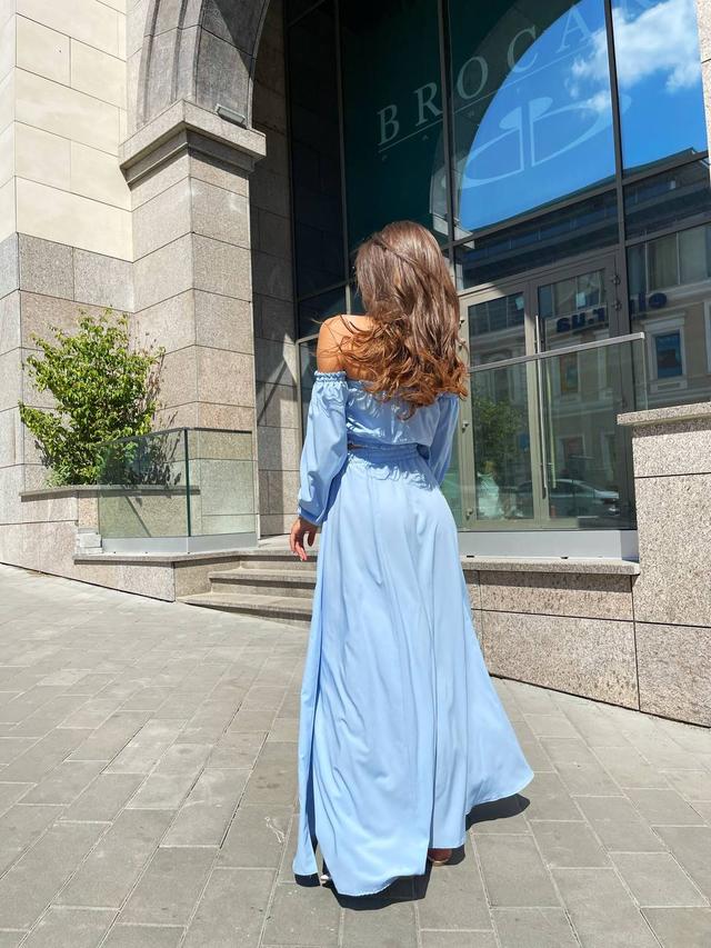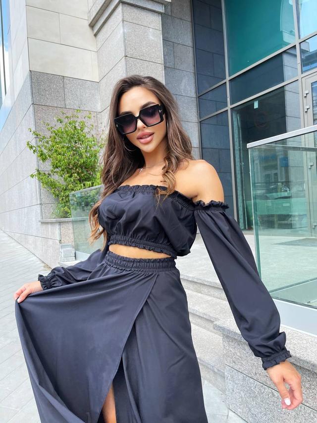 Цей чудовий комплект підкорив серця. Розкішна спідниця з розрізом розкриє красу Ваших ніжок, а оголені плічка на топі зроблять Ваш образ чарівним.