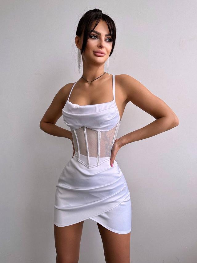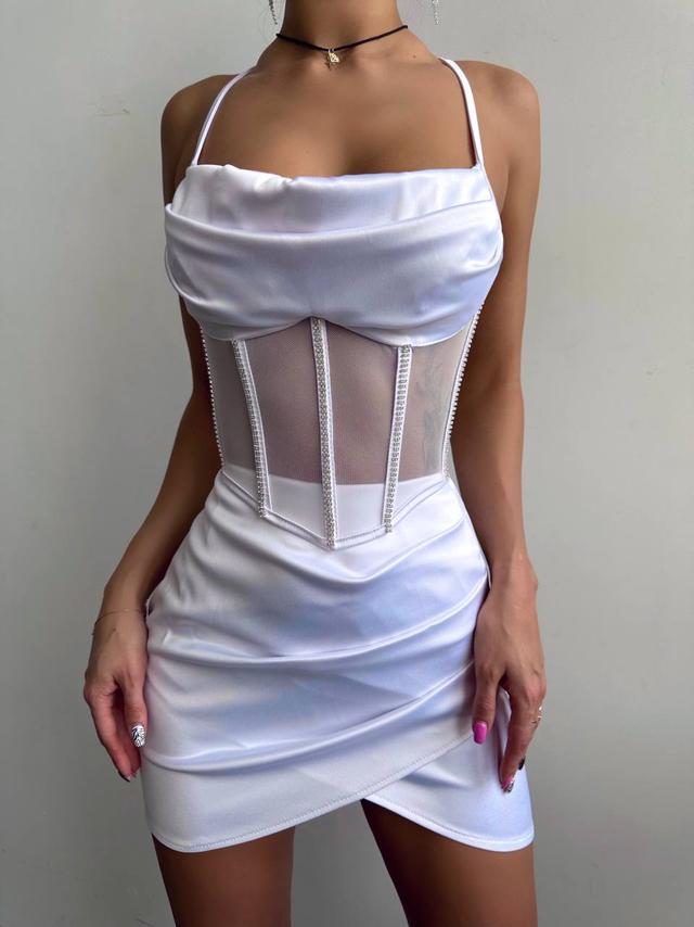 Комплект: корсет, декорований стразами + спідниця міні з драпіруванням.