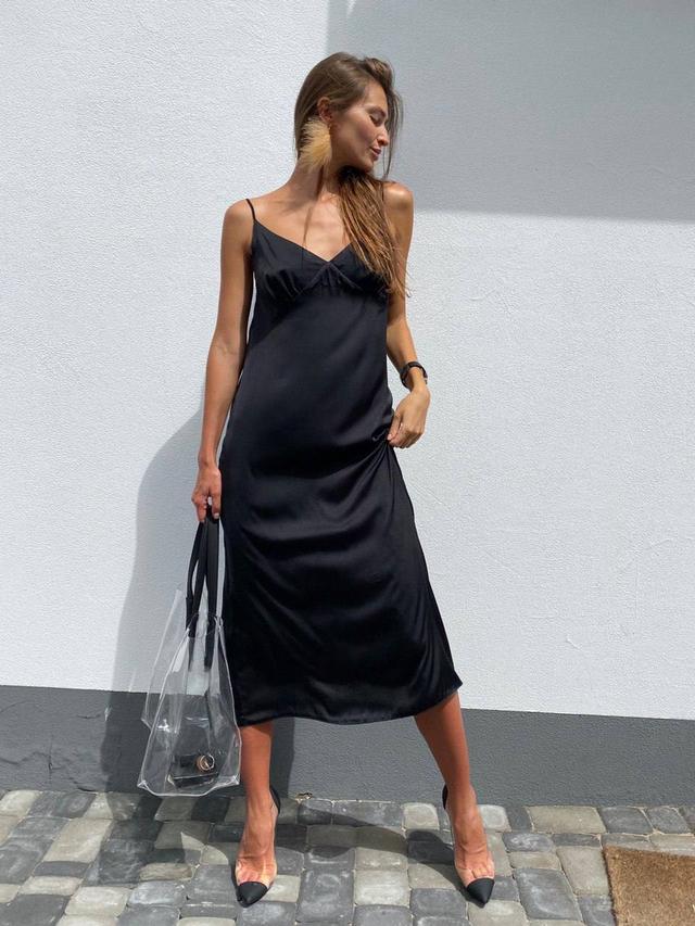 Шовкова жіноча сукня комбінація довжина міді на бретелях регуляторах Smld8466