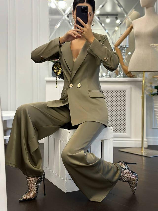 Шовковий класичний жіночий костюм Веста двобортний жакет та широкі брюки Df5565
