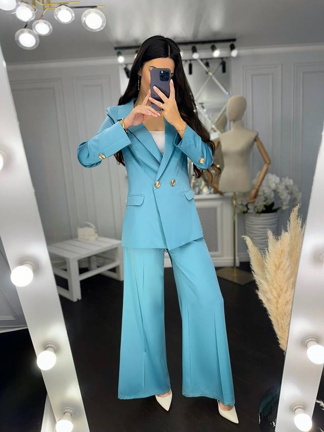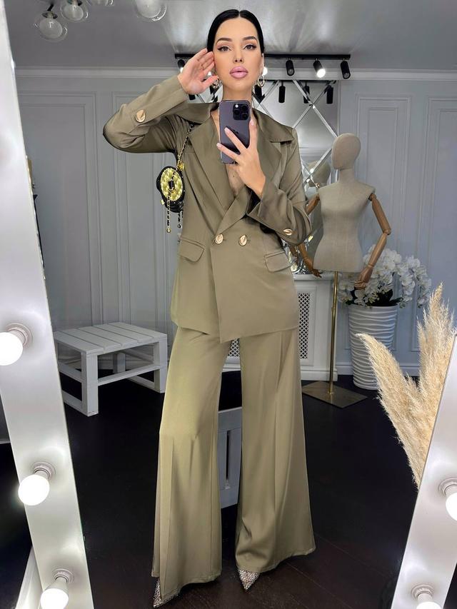 Опис моделі - двоботний жакет, штани з завищеною посадкою, збоку на молнії.