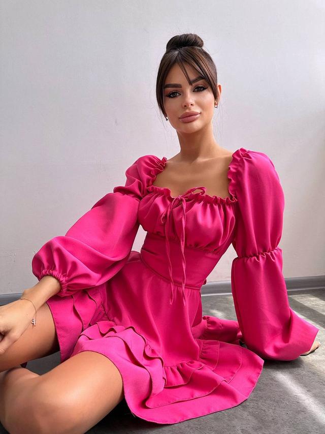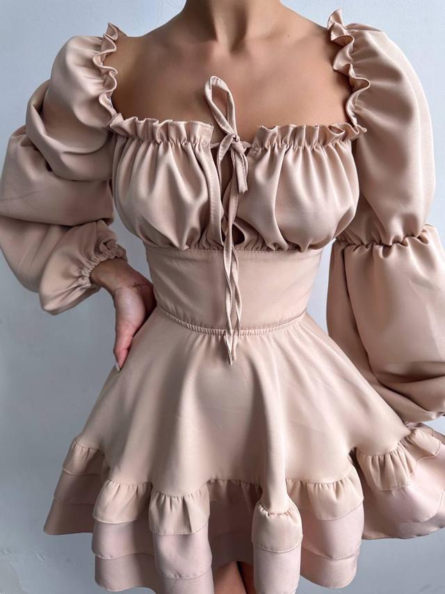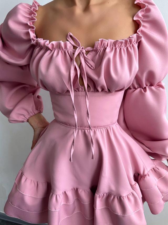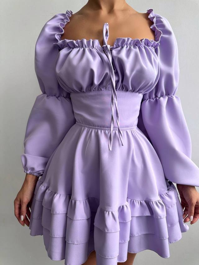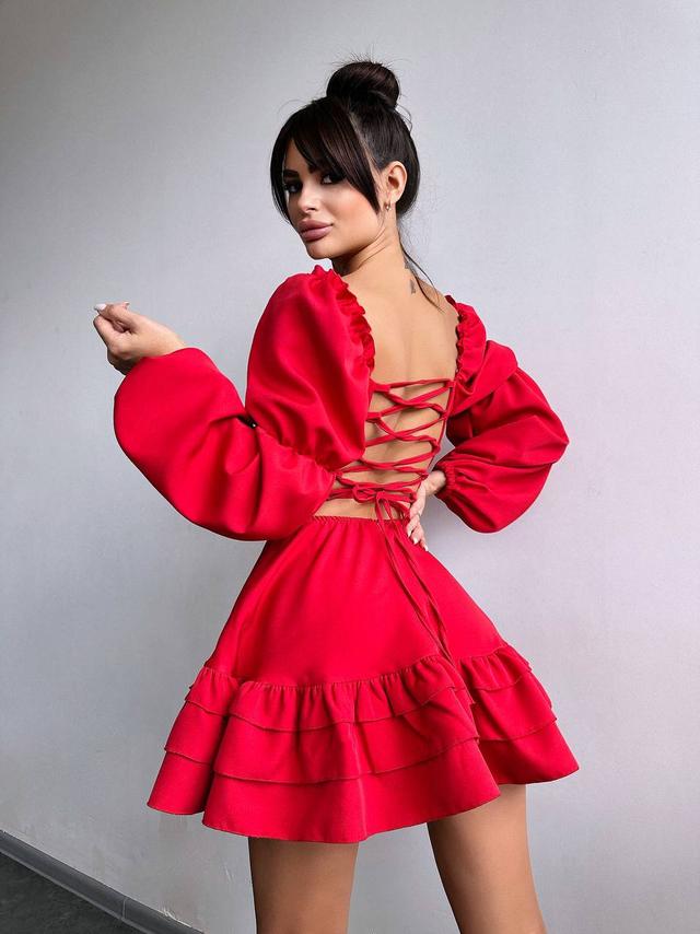 Красива жіноча міні сукня з оборками і шнурівкою на спині Smb8493