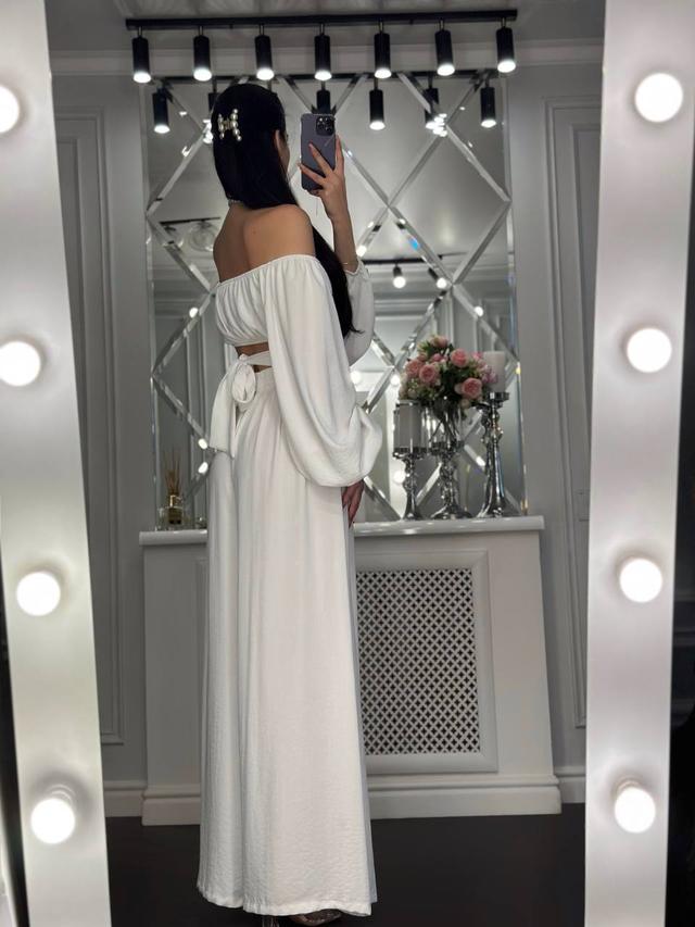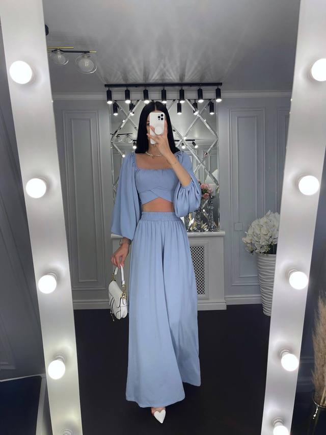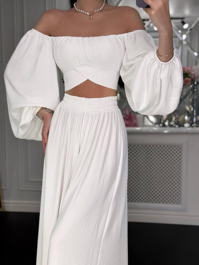 Стильний жіночий костюм Капсула топ з об'ємними рукавами та вільні брюки Df5576