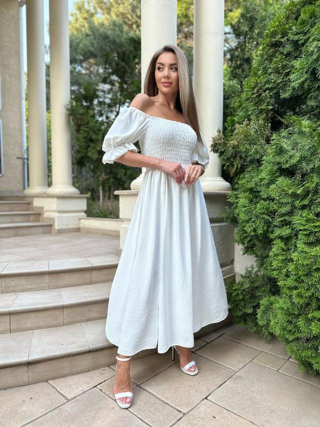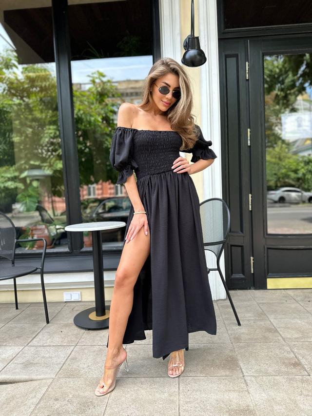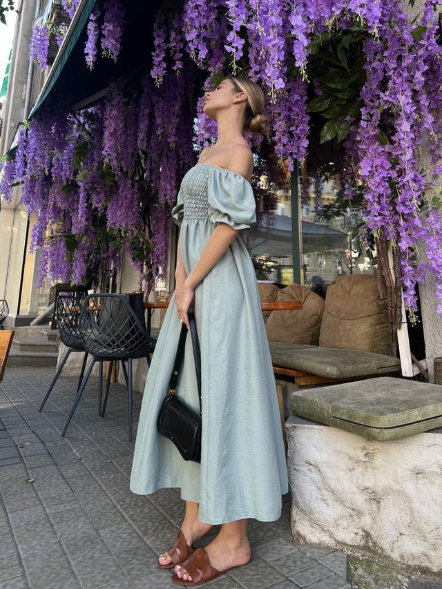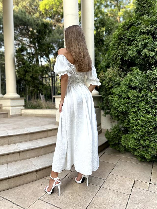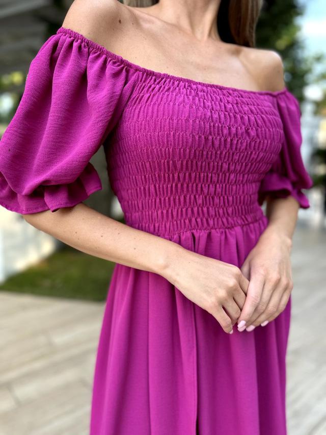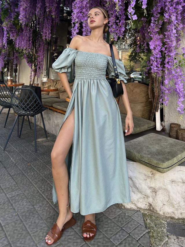 Жіноча сукня міді Прованс з коротким рукавом ліхтариком і розрізом на нозі з креп жатки Smslip8532
