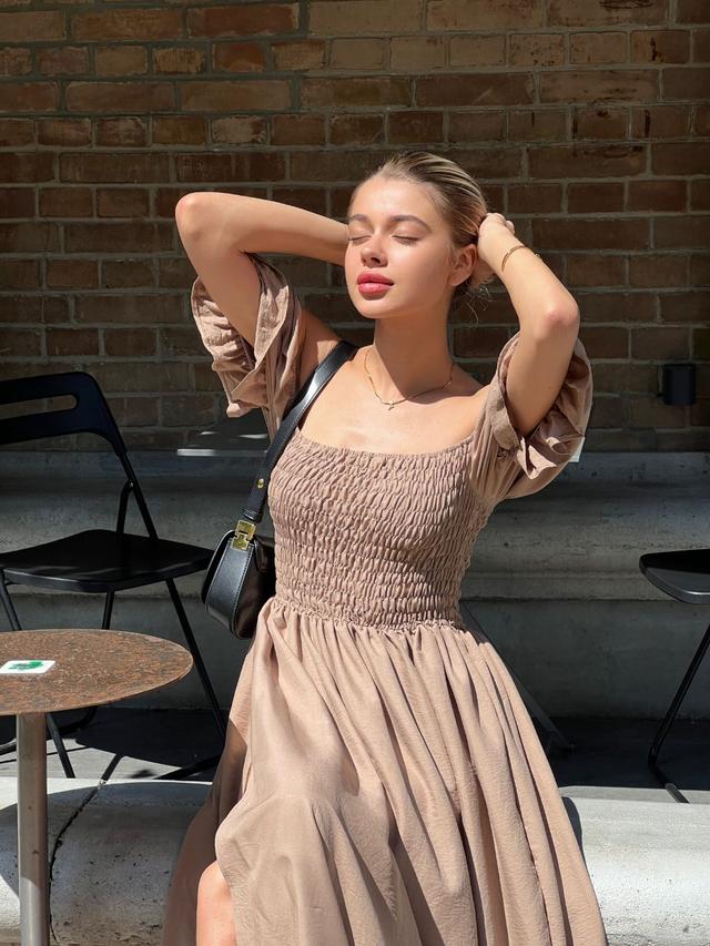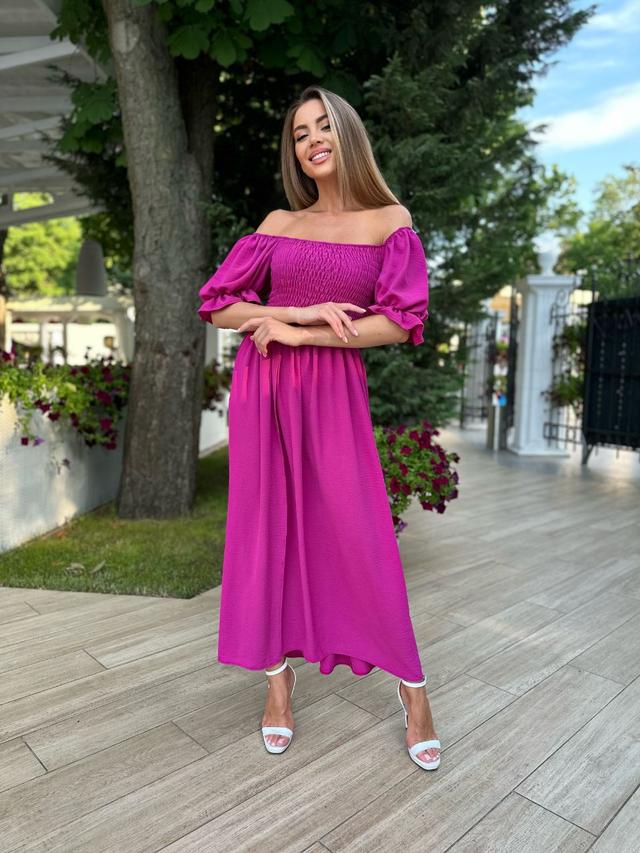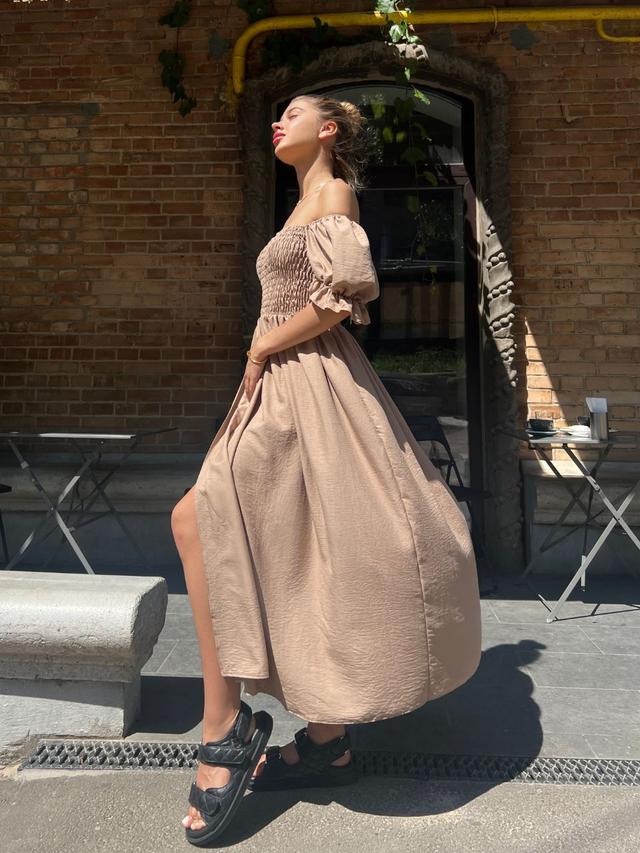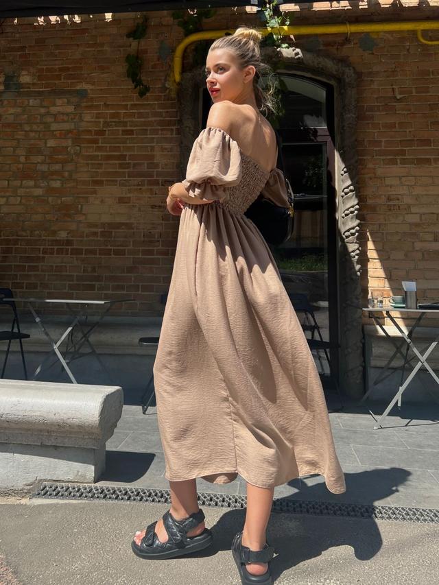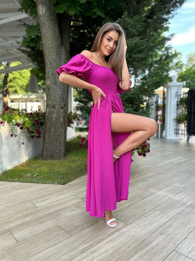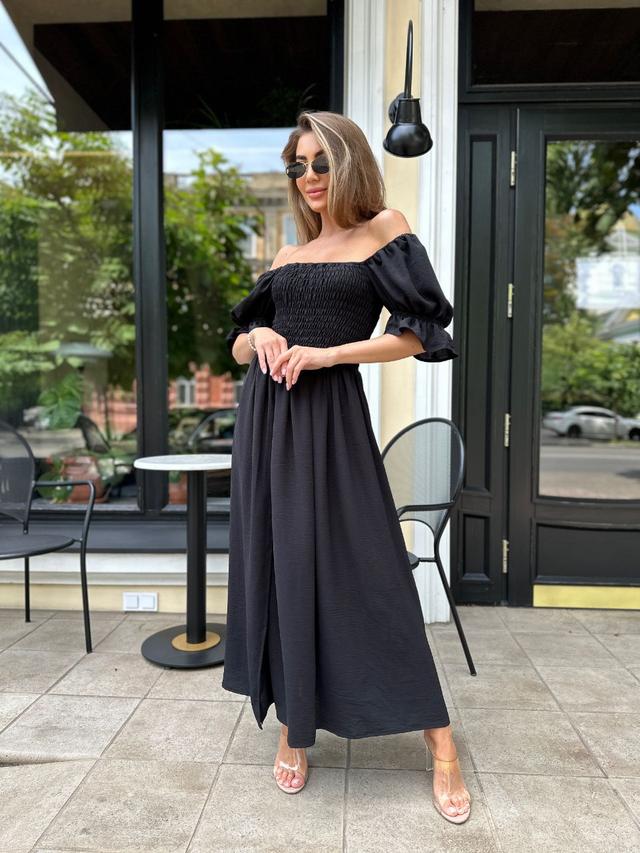 Жіноча сукня міді Прованс з коротким рукавом ліхтариком і розрізом на нозі з креп жатки Smslip8532
