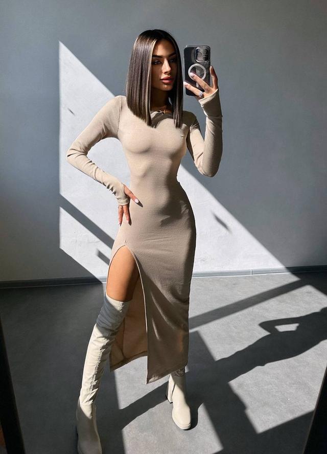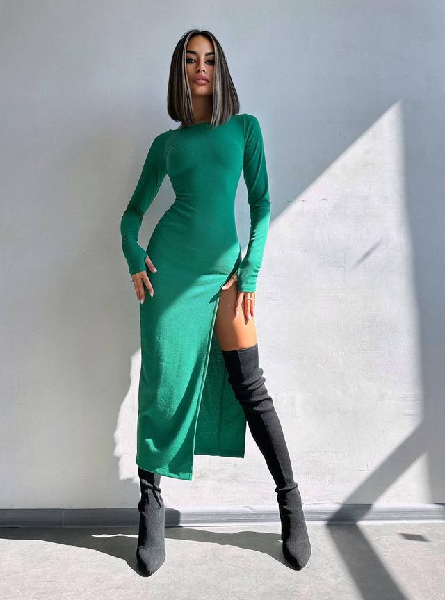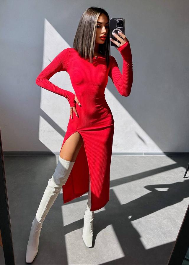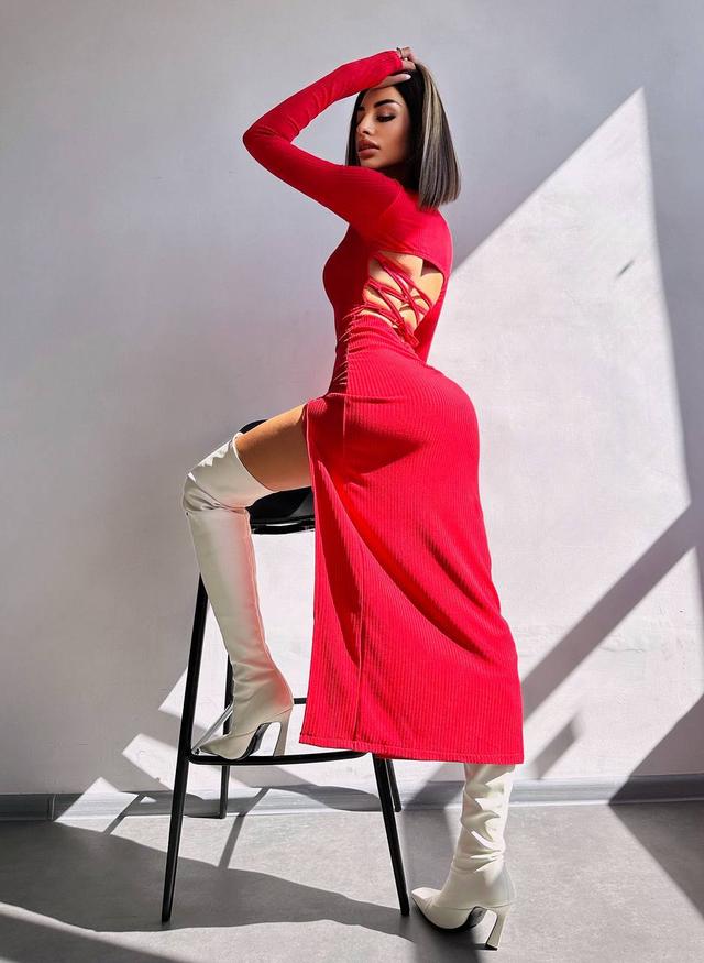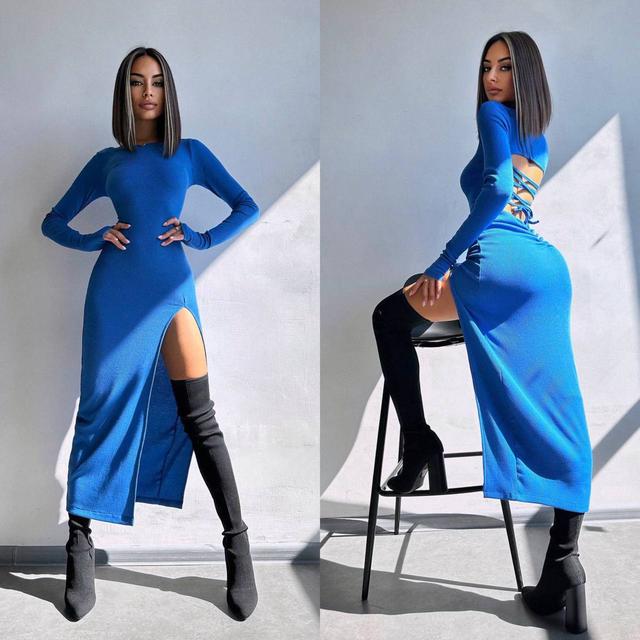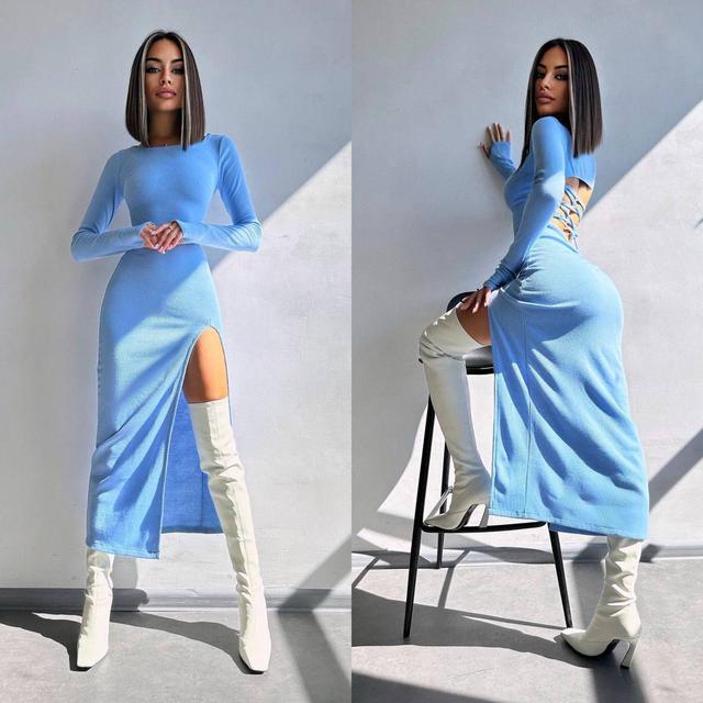 Жіноче трикотажне плаття міді з розрізом і шнурівкою на спині Smb8744