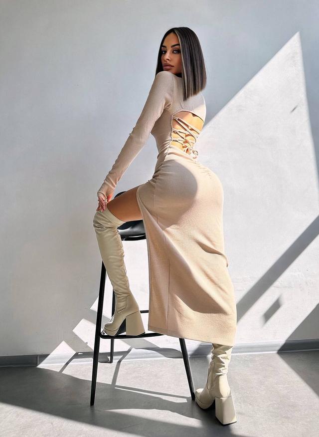Трикотажна сукня міді зі шнурівкою на спинці.