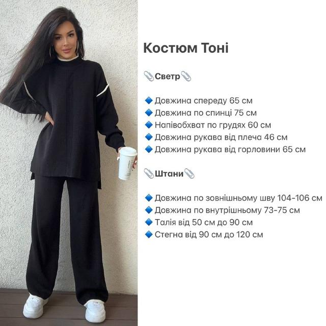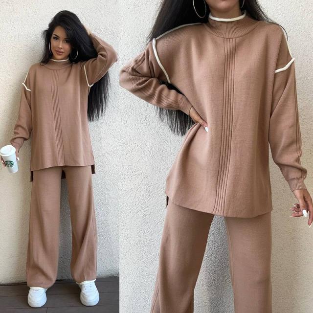 Комфортний повсякденний костюм. Складається із подовженого светра та вільних широких брюк. Дрібна машинна в'язка.