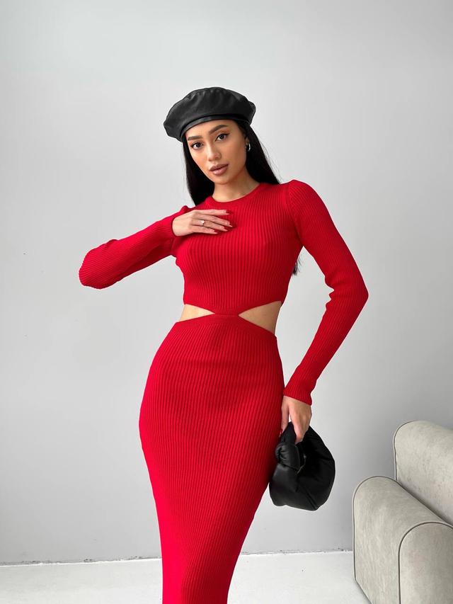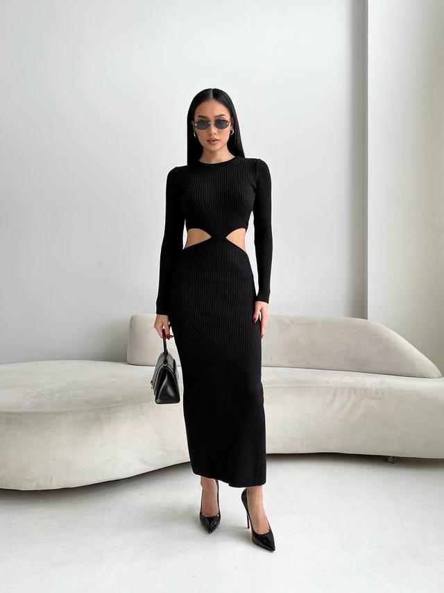 Облягаюча сукня максі чудово підкреслить вашу фігуру. Кругла горловина, довгі рукава та акцентні бічні вирізи.
