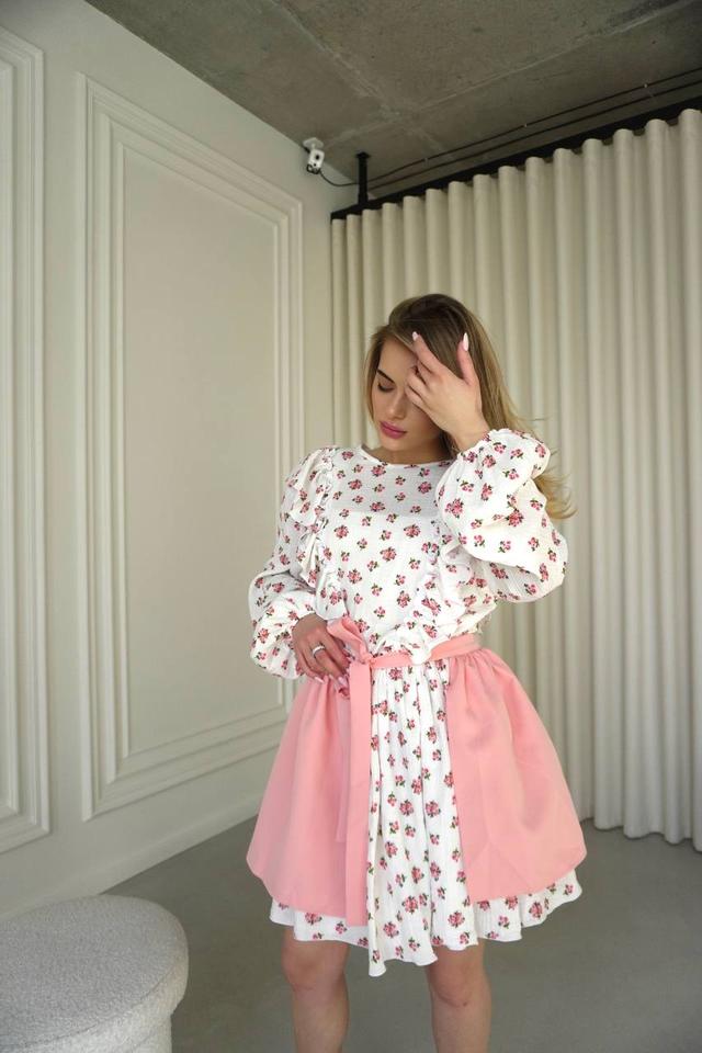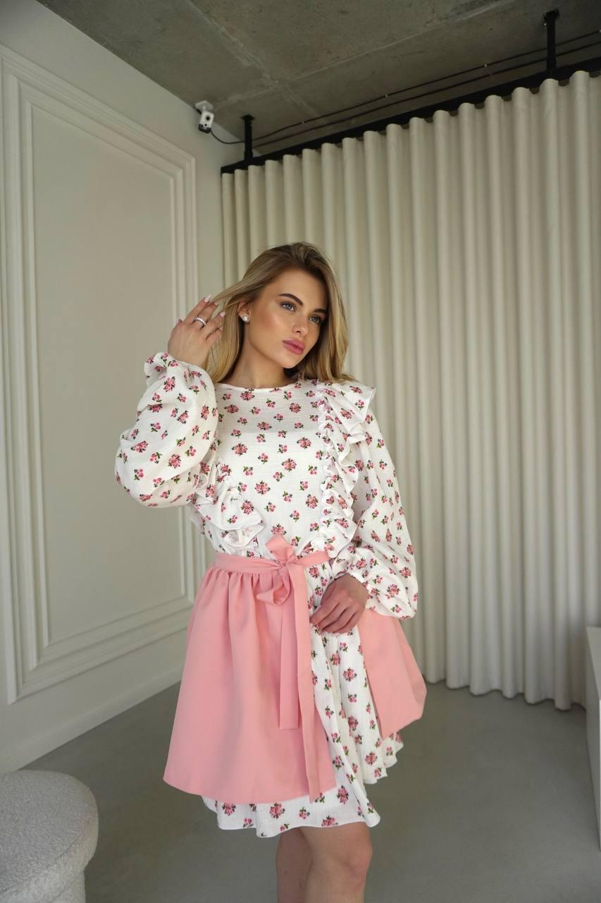 Ніжний жіночий комплект квіткова сукня муслін та контрастна спідниця Sms9076