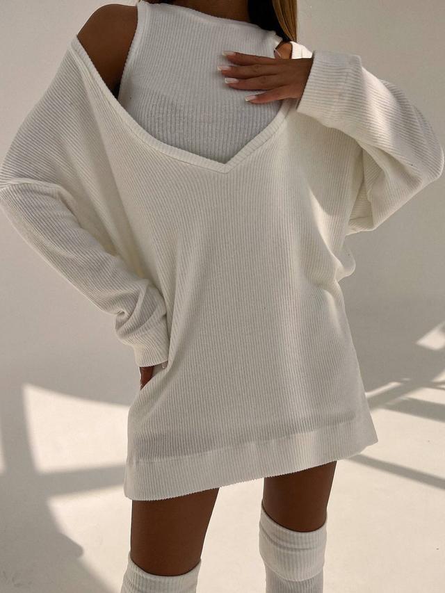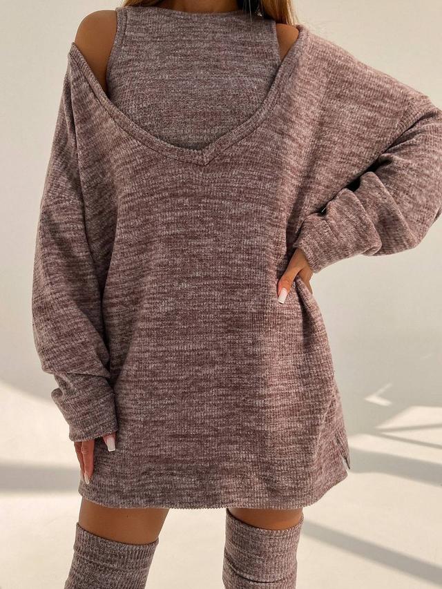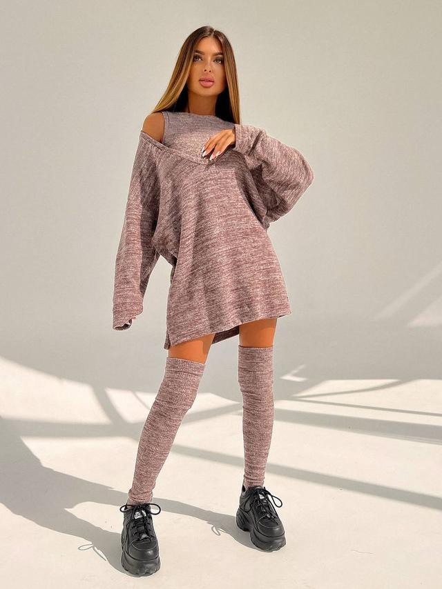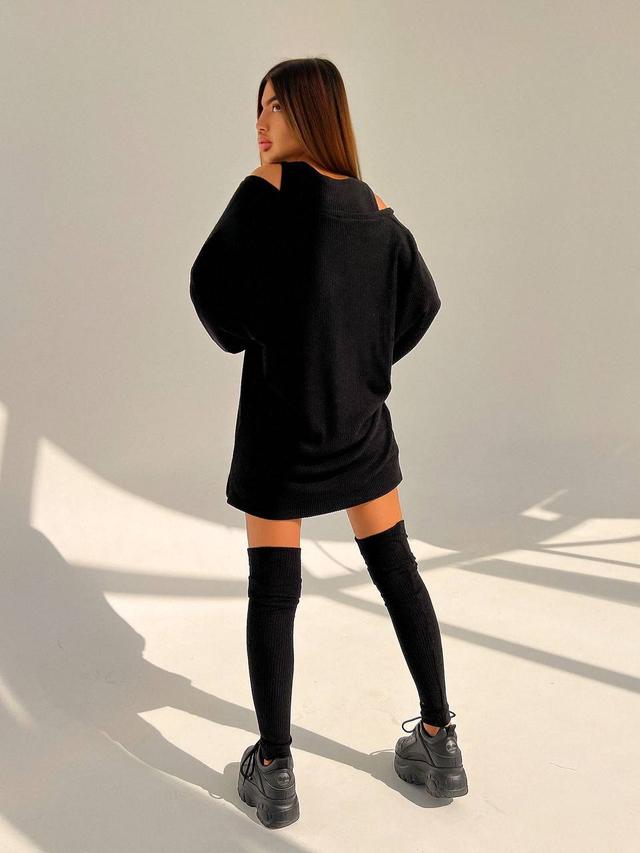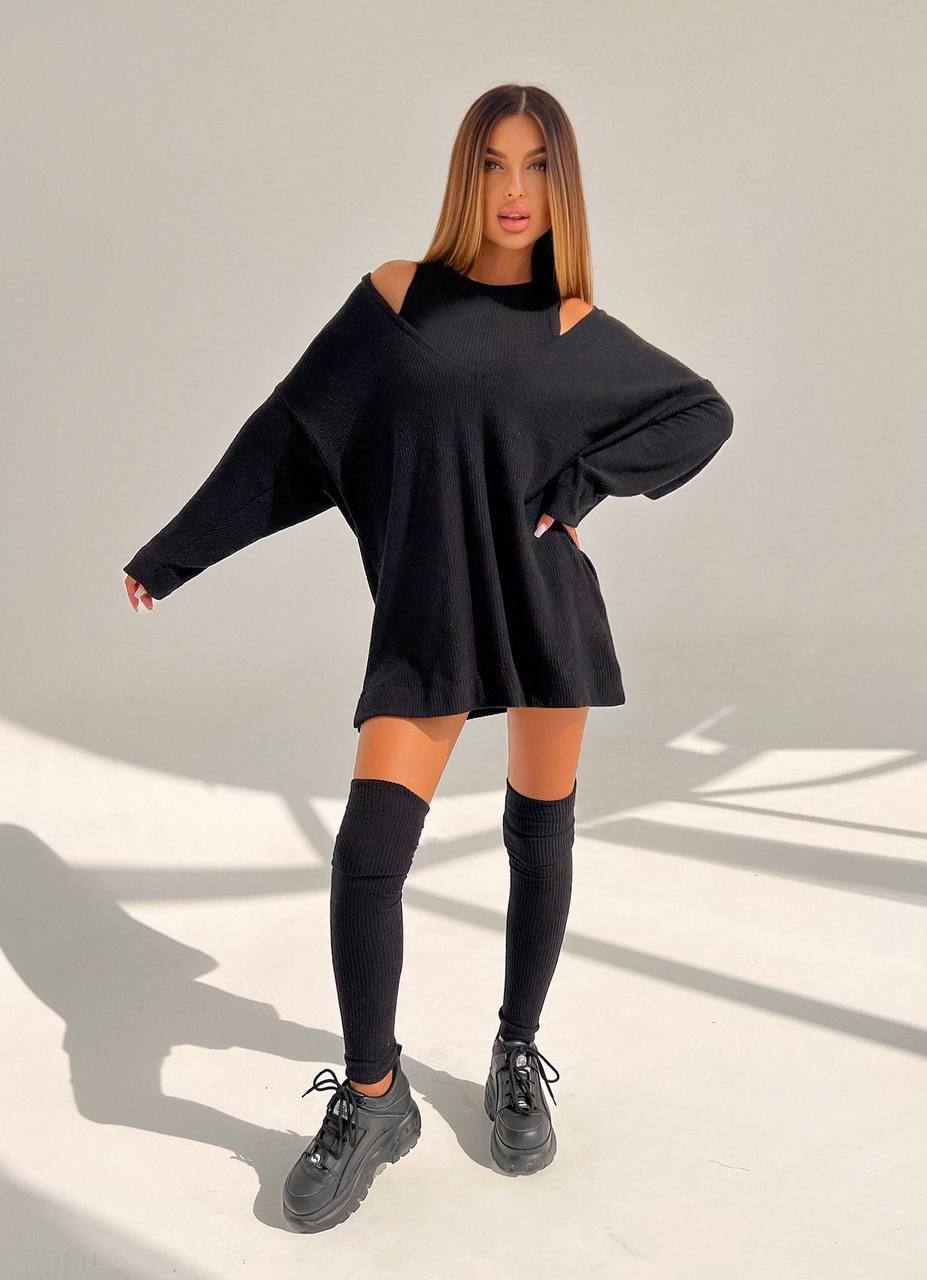Трикотажна тепла сукня міні. Модель з топом. Довгий рукав. У комплекті йдуть гетри.