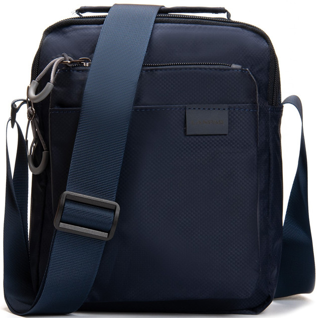 Модна чоловіча тканинна сумка на плече середня синя з нейлону на два відділи і три кишені ззовні на змійках Lanpad 53219.