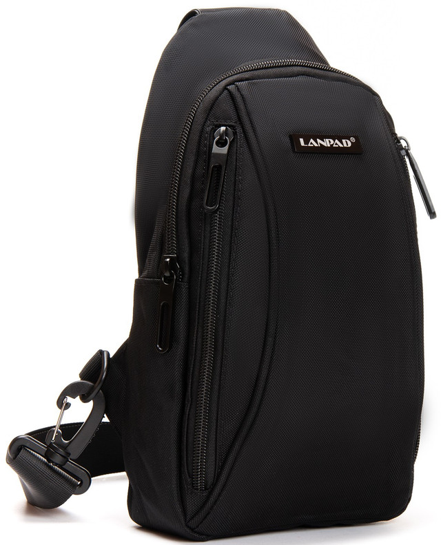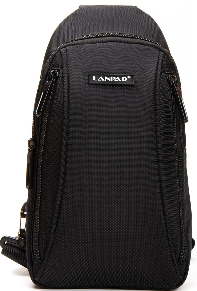 Сумка чоловіча Lanpad. Виготовлена із щільного нейлону. Одне відділення закривається на блискавку. Усередині відділення є відкрита бічна кишеня та кишеня на блискавці. На фасаді та на звороті розташовані кишені на блискавці.