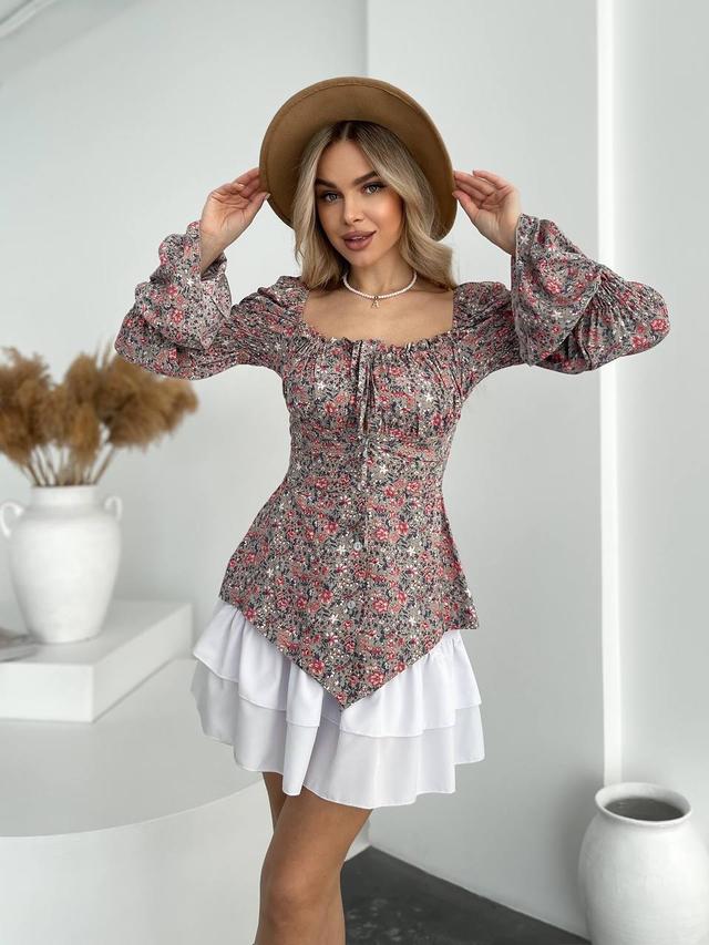 Жіноча сукня із баскою та білою спідницею Smv 9347