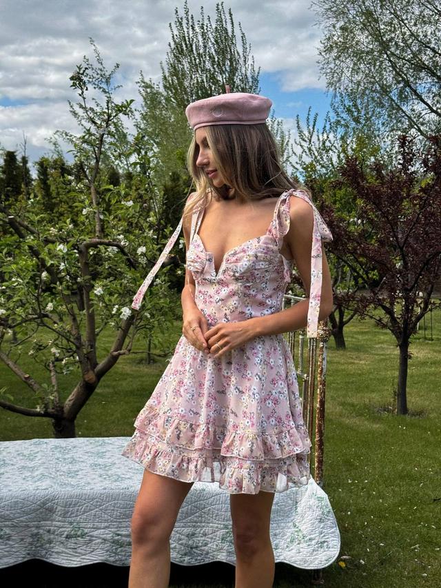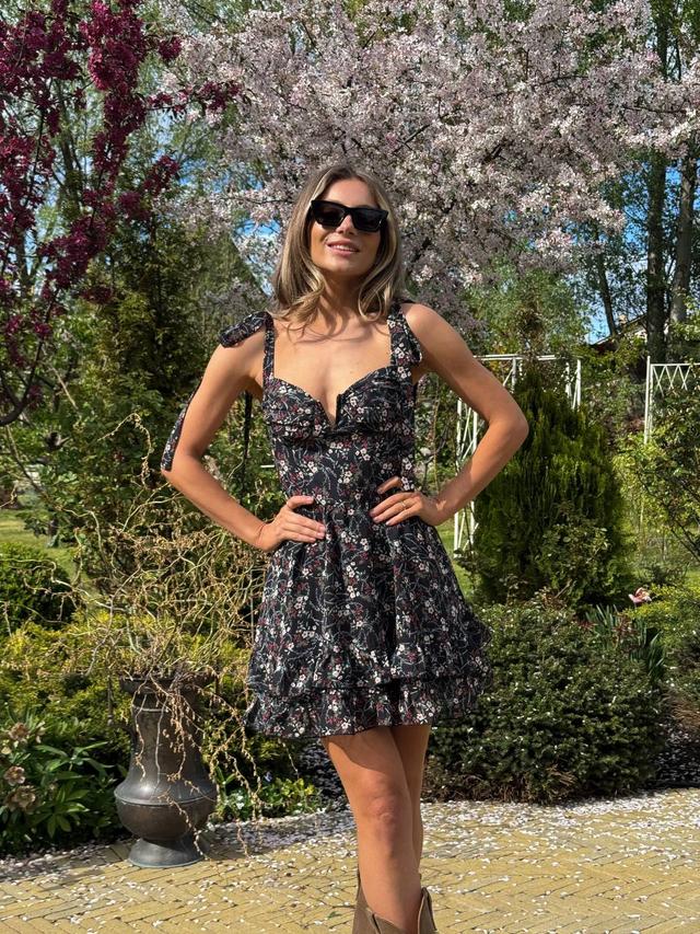 Літня міні-сукня з квітковим принтом — справжнє втілення романтичного настрою. Акцентне декольте та м’які рюші на спідниці додають образу легкості й грайливості. Ідеально пасує для прогулянок, побачень або відпочинку на природі.