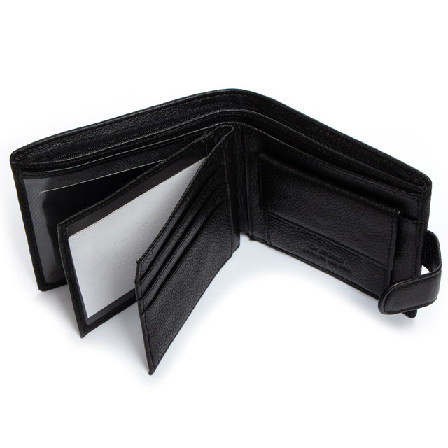 Гаманець чоловічий шкіряний чорний із відкидним блоком для карток і монетницею всередині на кнопці Dr. Bond M18055-1