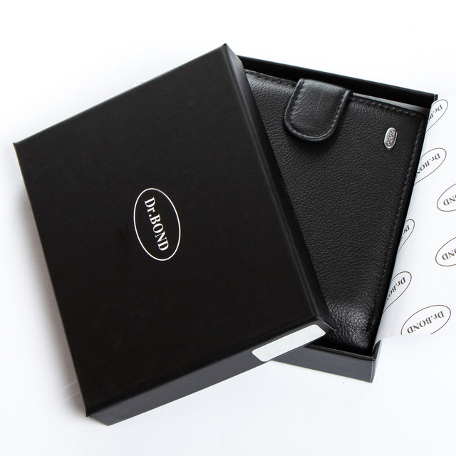 Гаманець чоловічий шкіряний чорний на кнопці три відсіки для грошей Dr. Bond M18055-1 з двома вкладками всередині для карток.